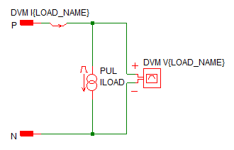 To set any managed DVM load to a Repeating Pure Current Pulse w/ Zero Rise and Fall Times Load subcircuit, place a PulZrft() testplan entry in the Load column.